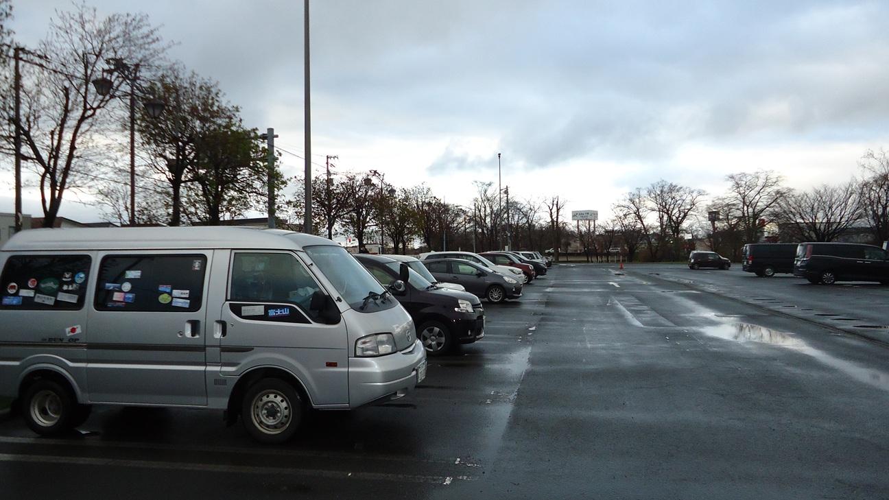 いつもの通り、端っこに車を止めます。・・就寝中の車のドアの開閉音を少なくするためです。