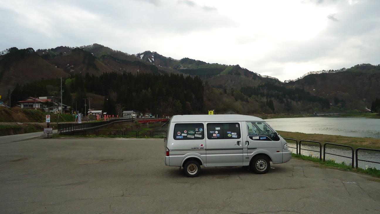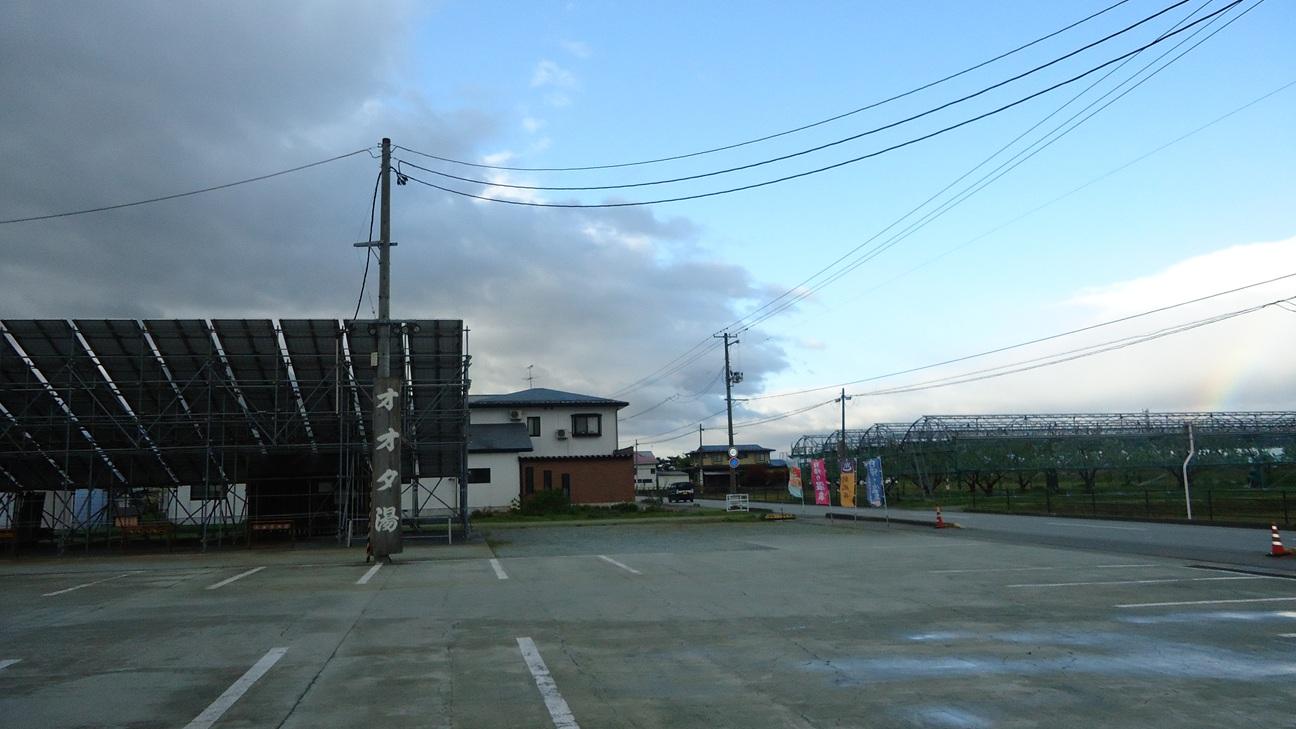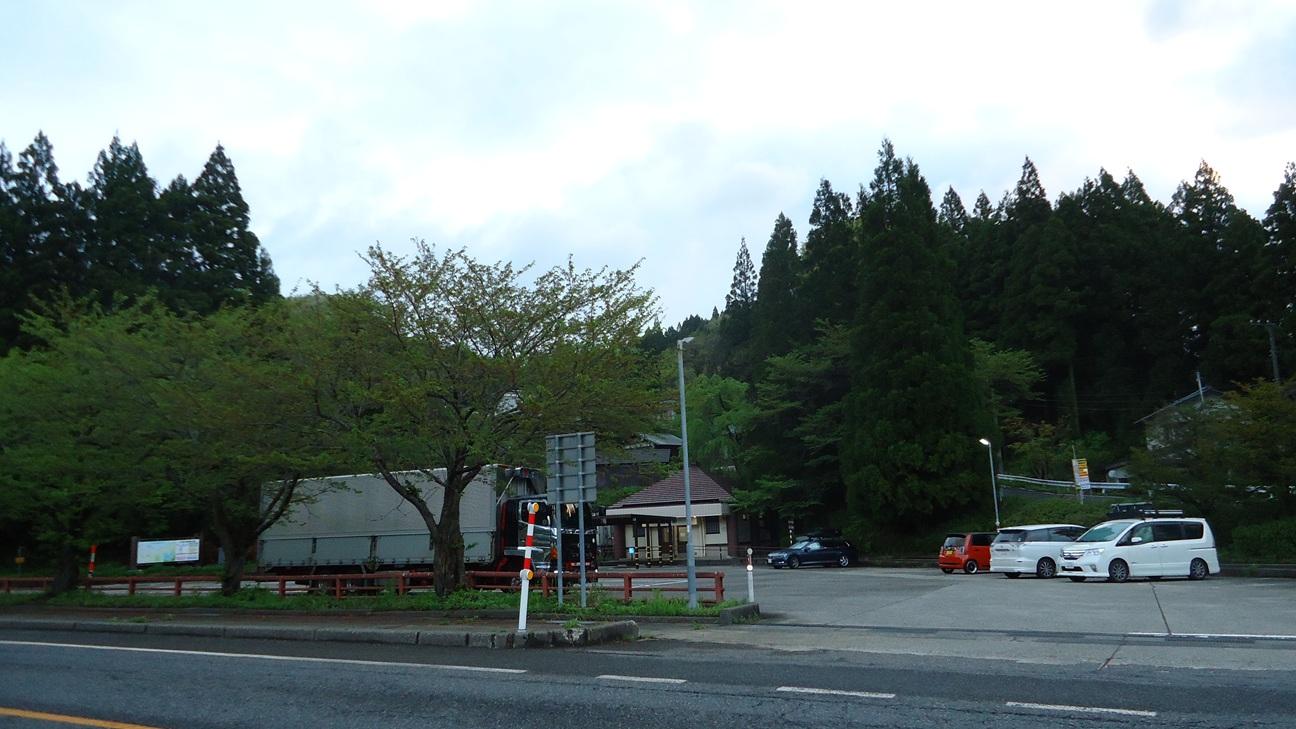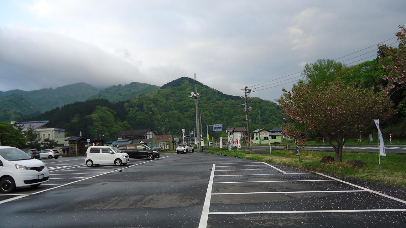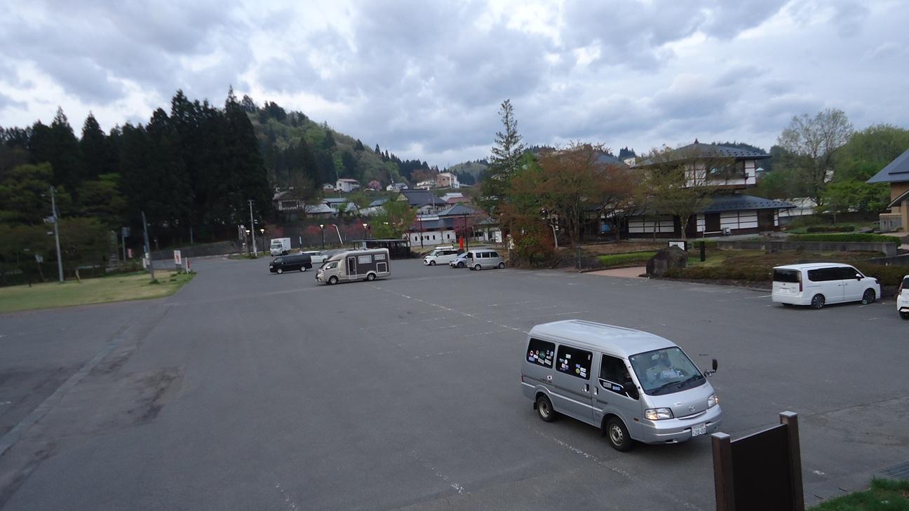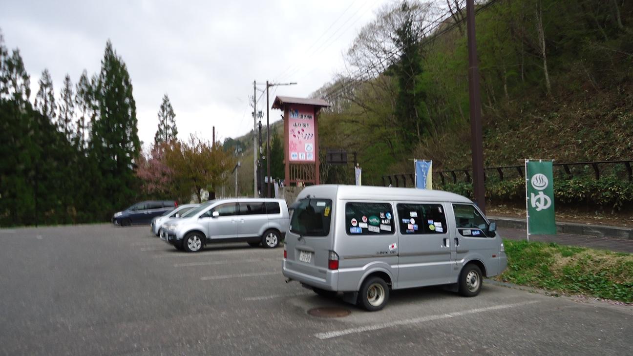 後で移動しますが、取り敢えず温泉の駐車場の隅に車を停めます。