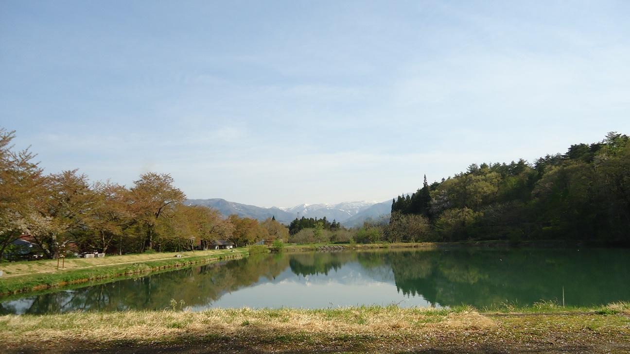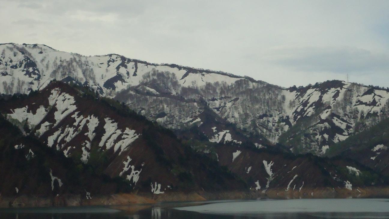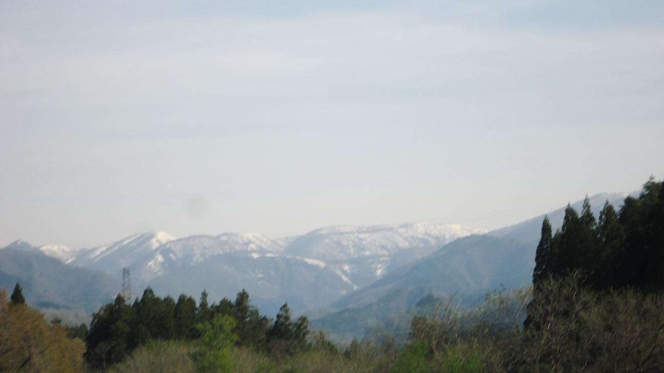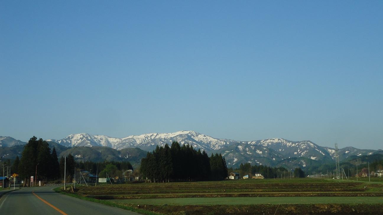 辺りの山は残雪です・・流石に東北の山々ですね。