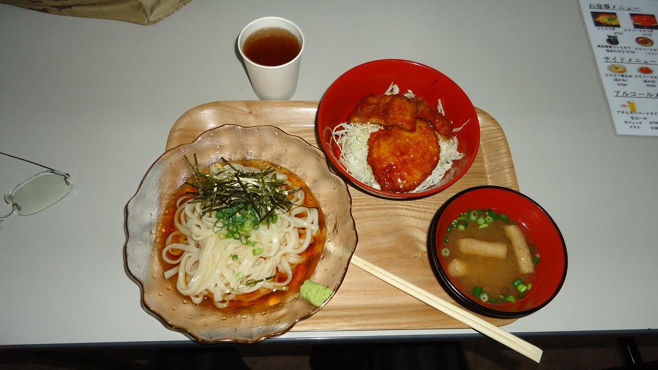 「稲庭冷うどんと「とりカツソース丼」のセットにしました。