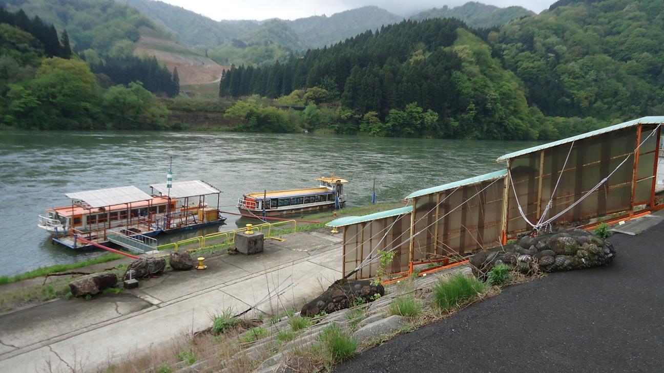 堤防を上がってみると、川下りの船が有りました。