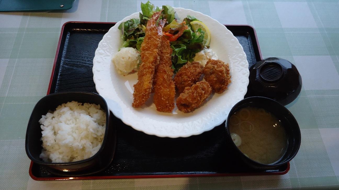午後からは、入浴・読書などをして過ごし、同じ食事処で「カキフライ・エビフライ定食」を食べました。