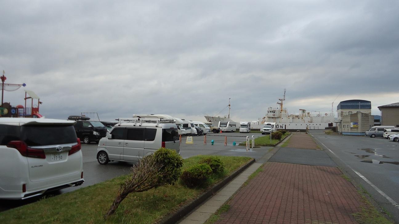 本格的車中泊車も、夜の内に増えていました。